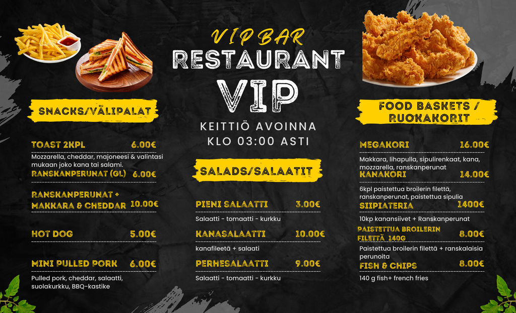 Meiltä voit tilata maukasta ruokaa myös kätevästi kotiisi toimitettuna. Näin voit nauttia herkullisista aterioista ilman vaivannäköä! Katso alta toimitusvaihtoehtomme ja valitse itsellesi sopivin! Olet vain parin klikkauksen päässä herkuista 😎